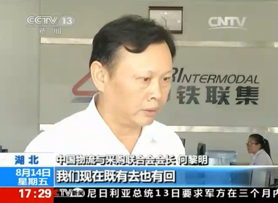 8月14日,中国物流与采购联合会会长何黎明应邀赴武汉见证全国第800列中欧班列(武汉-德国杜伊斯堡)X8017次开行,并接受央视采访。