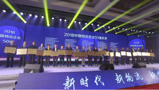 会议期间,开展了中国物流50强颁牌表彰活动。根据国家发展改革委、中国物流与采购联合会《社会物流统计报表制度》(发改运行〔2017〕552号)的要求,我会组织实施了重点物流企业统计调查,根据调查结果提出了2018年度中国物流企业50强排名。50强物流企业2017年物流业务收入合计10477亿元,按可比口径计算,同比增长26.1%,增速比上年同期提高19.2个百分点,收入增速回升明显得益于2017年大宗商品物流需求的改善及消费领域物流需求的强劲增长。50强物流企业门槛提高到29.6亿元,比上年增加1.1亿元。根据物流企业物流业务收入统计数据排序是一项公益性的活动,希望通过中国物流企业50强排名真实客观反映物流企业改革发展成果,引导物流企业做优做强,提高我国物流业综合竞争力。