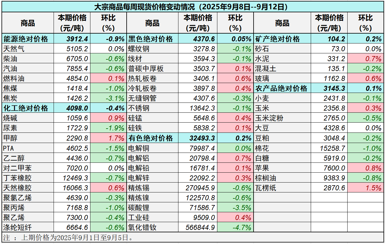 - 中国重要大宗商品市场价格变动情况周报 (251009--251011)