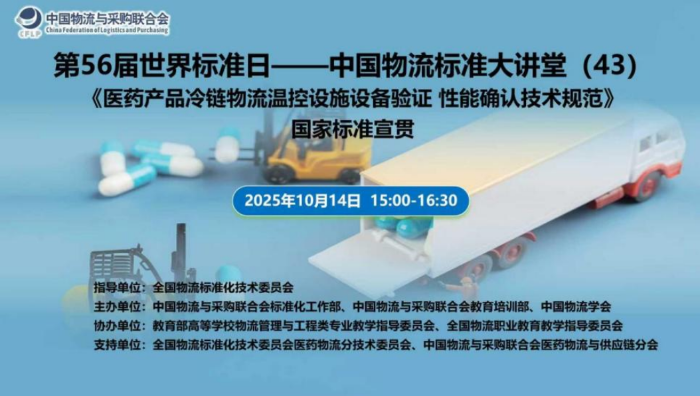 在2025年10月14日第56届世界标准日,全国物流标准化技术委员会举办了“第56届世界标准日——中国物流标准大讲堂第43期活动”,对物流国家标准《医药产品冷链物流温控设施设备验证 性能确认技术规范》(GB/T 34399—2025)进行宣贯,2900余人在线参加了活动。