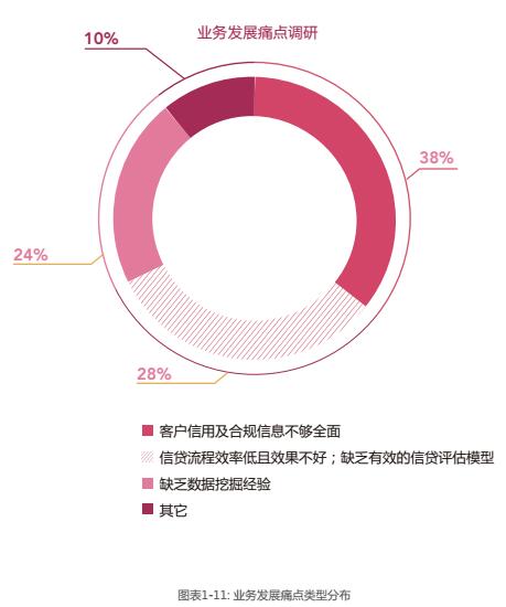 4、通过本次调研我们发现90%的企业均认为征信信息缺失、数据挖掘能力弱、模型评估能力弱三方面制约了其业务的进一步发展。