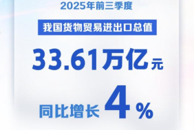 顶住压力,逆势向上! 10月13日,海关总署新鲜出炉的外贸三季报显示,2025年前三季度,我国货物贸易进出口33.61万亿元,同比增长4%,比前8个月加快0.5个百分点。 “成绩来之不易”。海关总署副署长王军在当天国新办举行的新闻发布会上说,总的看,前三季度,各地各部门攻坚克难、努力拼搏,广大外贸企业积极应变、开拓创新,我国外贸韧性彰显、结构优化,实现了量质齐升。